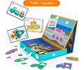 La caja de aprendizaje de oblea multifuncional ofrece una amplia gama de beneficios cognitivos para los niños. Sus propiedades magnéticas fomentan el desarrollo de habilidades motoras finas, como la destreza para manejar imanes y el agarre del lápiz, mientras que la diversidad de elementos magnéticos estimula la creatividad y el lenguaje al permitir a los niños explorar animales, vehículos, entornos (como el océano o la granja), partes del cuerpo y colores. Además, promueve la alfabetización a través de la exposición a palabras visuales y mejora la coordinación mano-ojo, así como la capacidad de escaneo visual.