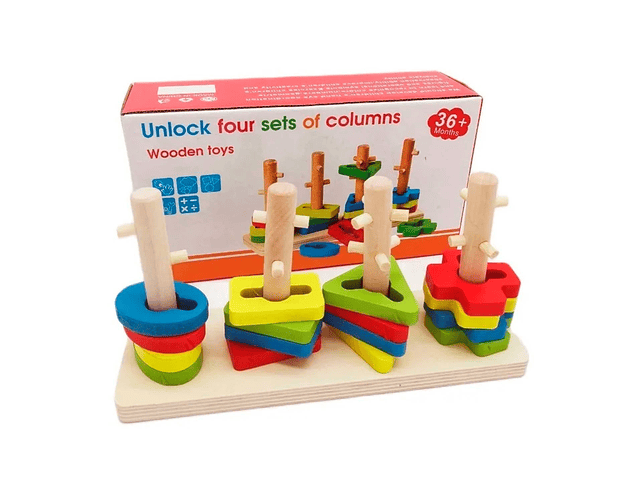 Ayude a sus hijos a reconocer diferentes formas a través de Desbloquear cuatro conjuntos de columnas para desarrollar la coordinación ojo-mano y las habilidades de percepción visual.