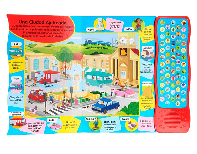Averígualo en este maravilloso libro lleno de muchas primeras palabras para aprender y 60 sonidos muy divertidos.