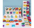 Juego de juguetes Montessori de madera para niños de 2-5 años, incluye rompecabezas, juego de pesca, colores, números, formas y bloques apilables. Fomenta desarrollo temprano, coordinación y creatividad. Seguro, cumple estándares internacionales. Ideal como regalo educativo para niños de 2-4 años.